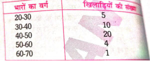 92. एक छात्रावास के खेल में खिलाडियों के भारों का बंटन निम्न सार के अनुसार है :