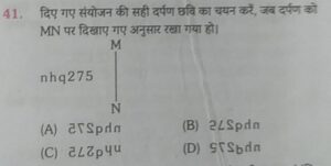 41. दिए गए संयोजन की सही दर्पण छवि का चयन करें, जब दर्पण को MN पर दिखाए गए अनुसार रखा गया हो।